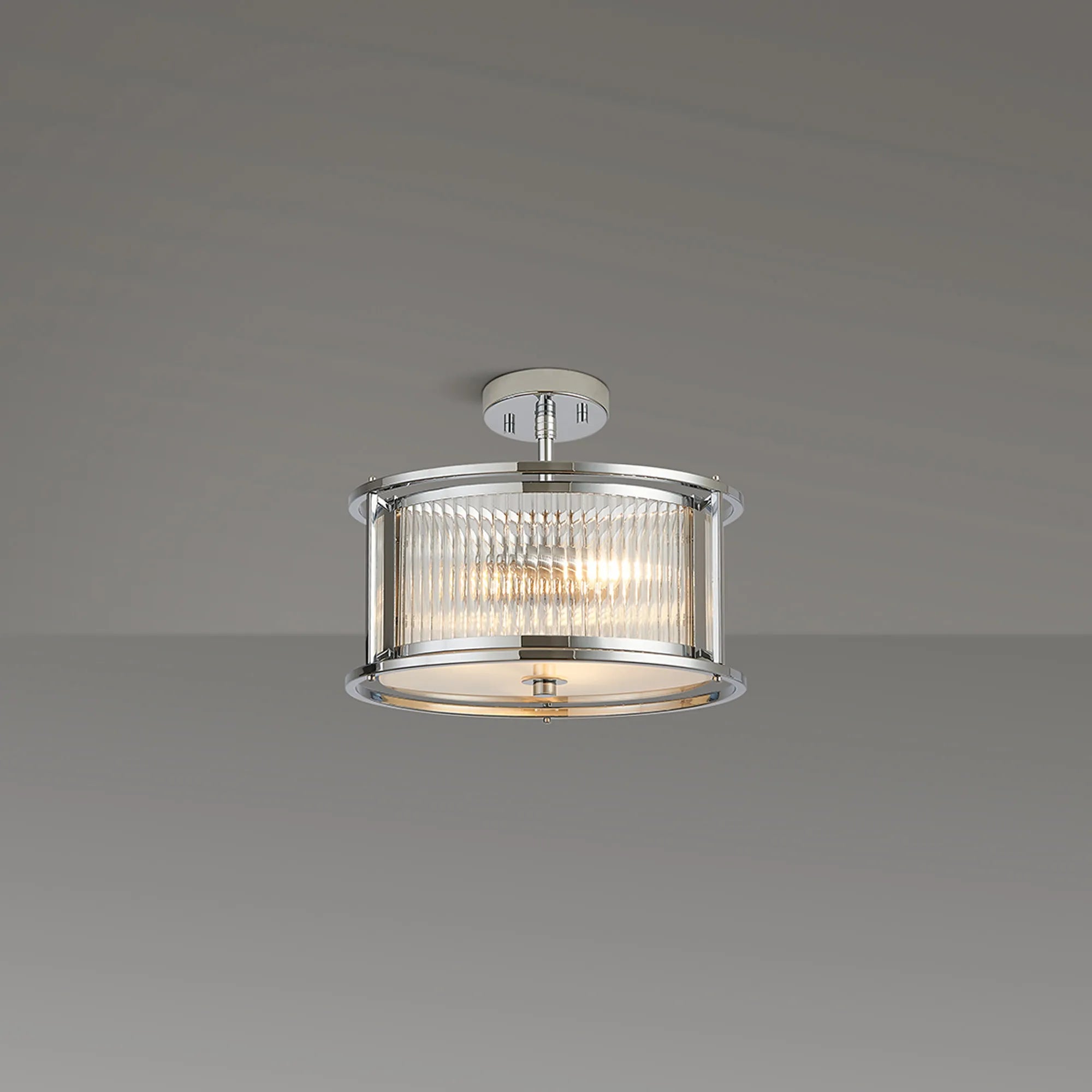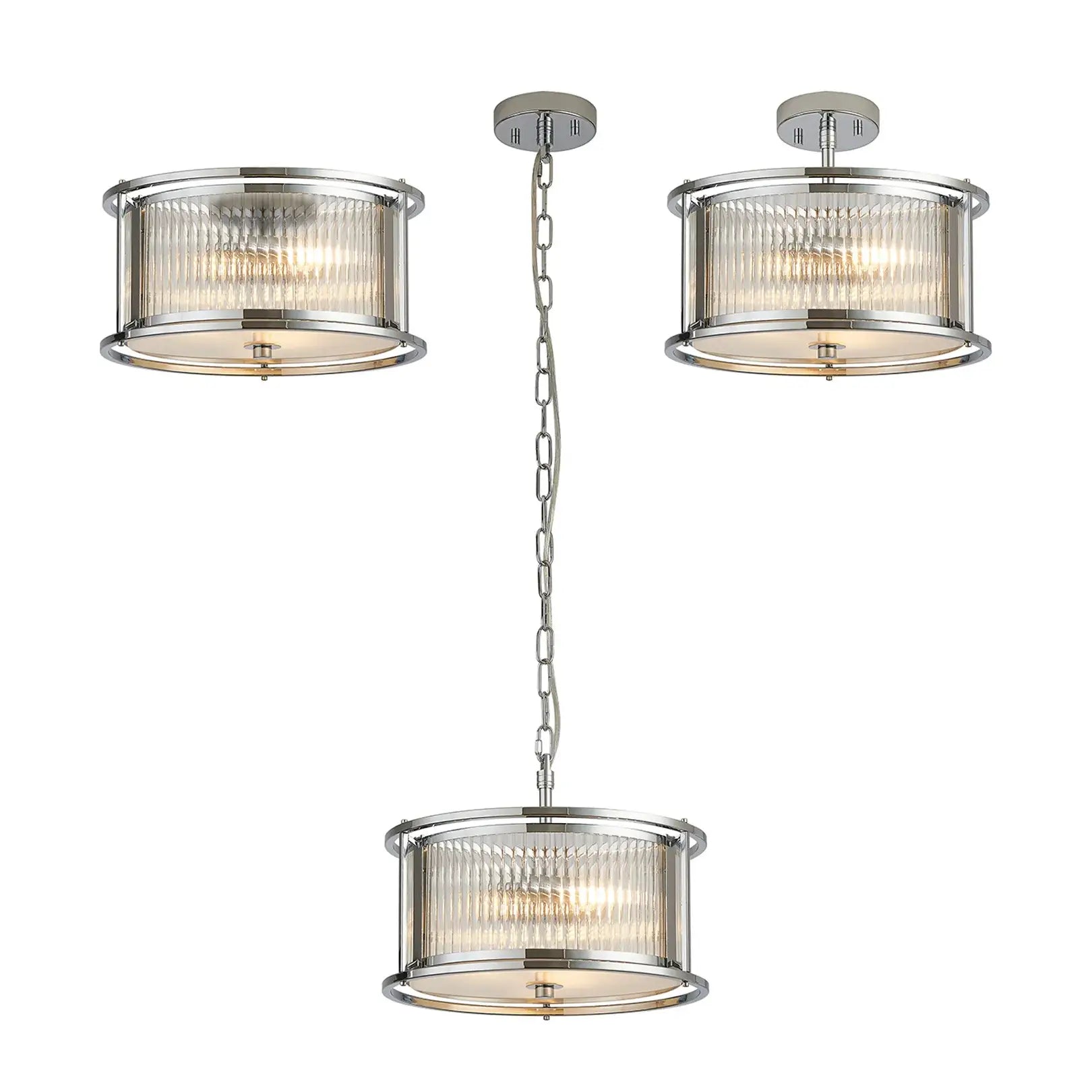 3 Light 35cm Round Flush/Semi Ceiling/Pendant Convertible, E14, Polished Chrome/Clear Glass - Other Finishes available (1230LUX86D)