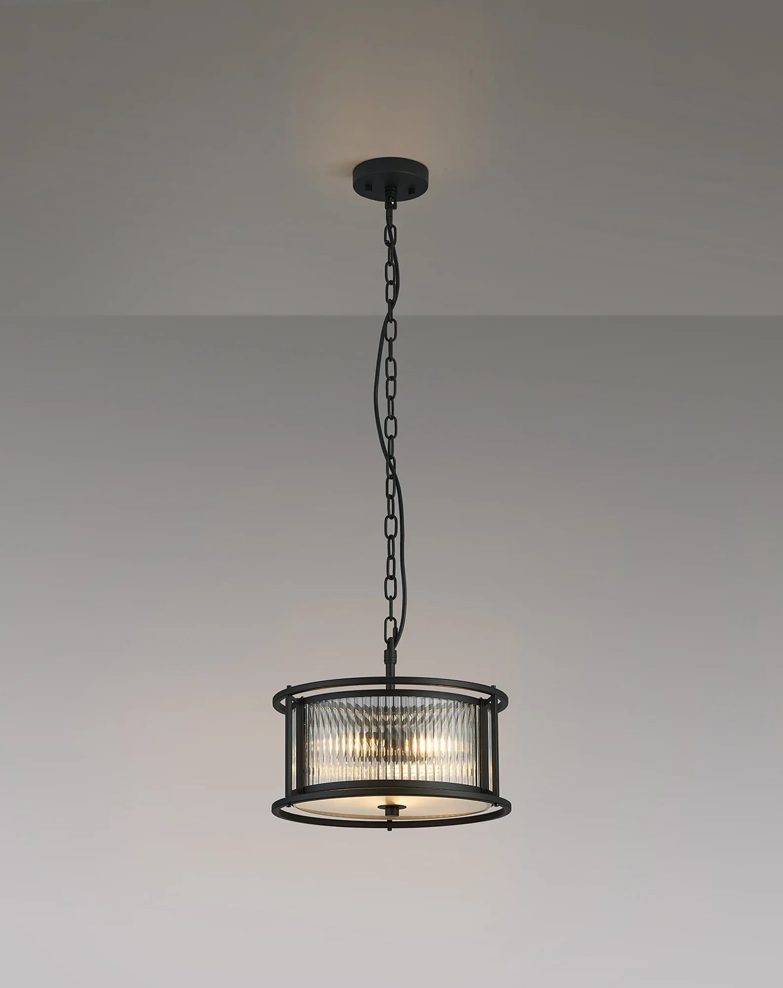 3 Light 35cm Round Flush/Semi Ceiling/Pendant Convertible, E14, Satin Black/Clear Glass - Other Finishes available (1230LUX86A)