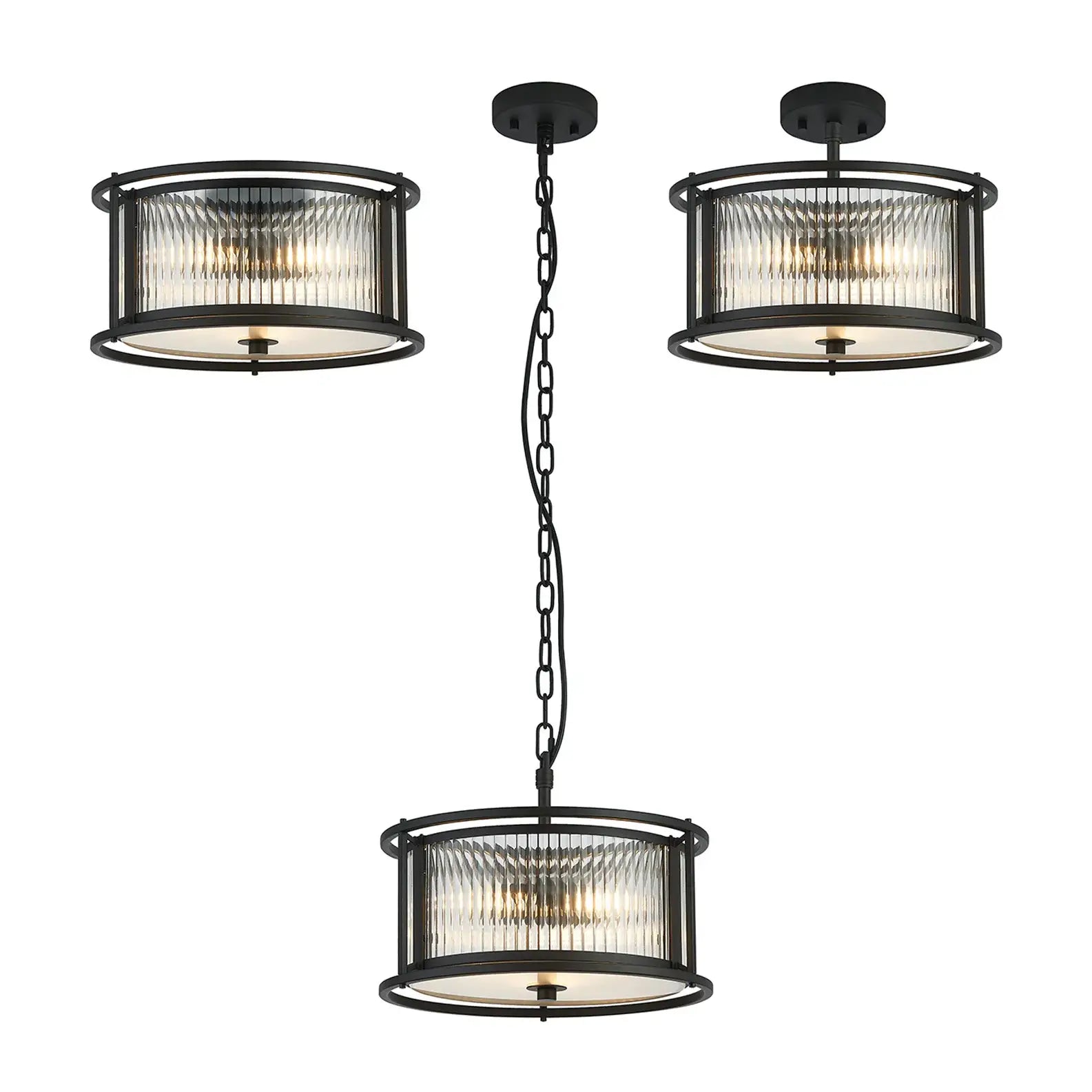 Luxe presents a captivating collection of lantern-style lighting, featuring elegant round and generously sized oval pendants-each effortlessly convertible to semi-flush or flush mount. Available in four exquisite finishes, you can easily find the perfect hue to complement your décor. The ribbed glass panels add a distinctive texture and subtle visual intrigue, enhancing the character of every fixture. Whether you're seeking a modern vibe or a timeless classic look, the Luxe collection offers versatile, stylish lighting options designed to elevate any interior. Complete the look with complementing wall, table or floor lamp.