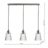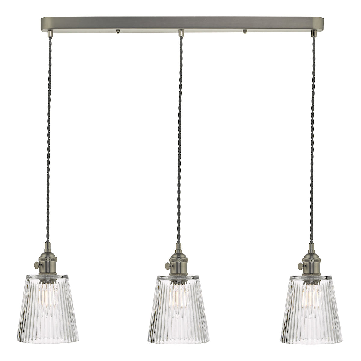 3 Light Antique Chrome Suspension with Ribbed Glass Shades (0183HAD366105)