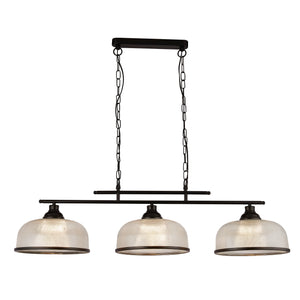 This 3Lt Bar Pendant is a captivating lighting fixture that is ideal for any kitchen, dining area or living room. It features a sleek combination of mild steel and holophane style glass in a stunning matt black and clear colour scheme. Its versatile style seamlessly complements both modern and traditional spaces while its height-adjustable design allows for personalised lighting. The shade boasts a classy black metal trim, while the clear holophane style glass shade with a ribbed inner adds a touch of elegance.