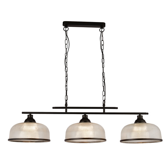 3 Light Bar Pendant - Black Metal & Holophane Glass (0483HIG3BK)