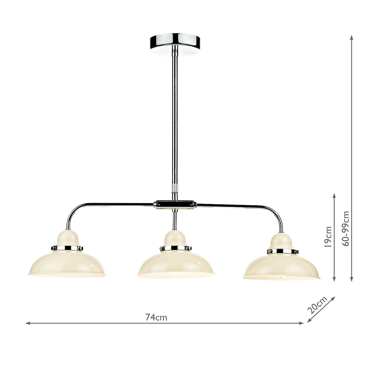 3 Light Bar Pendant Cream and Polished Chrome (0183DYN033)
