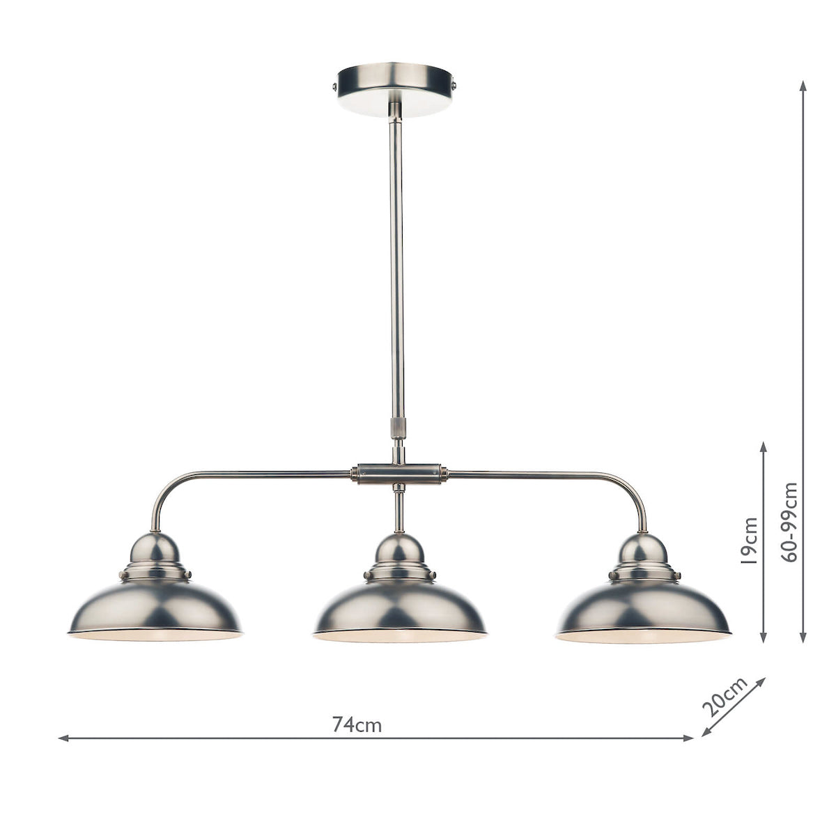 The 3 Light Pendant features a metal retro-styled shades in a choice of finishes.