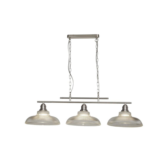 3 Light Bar Pendant - Satin Silver & Holophane Glass (0483BIS71833SS)