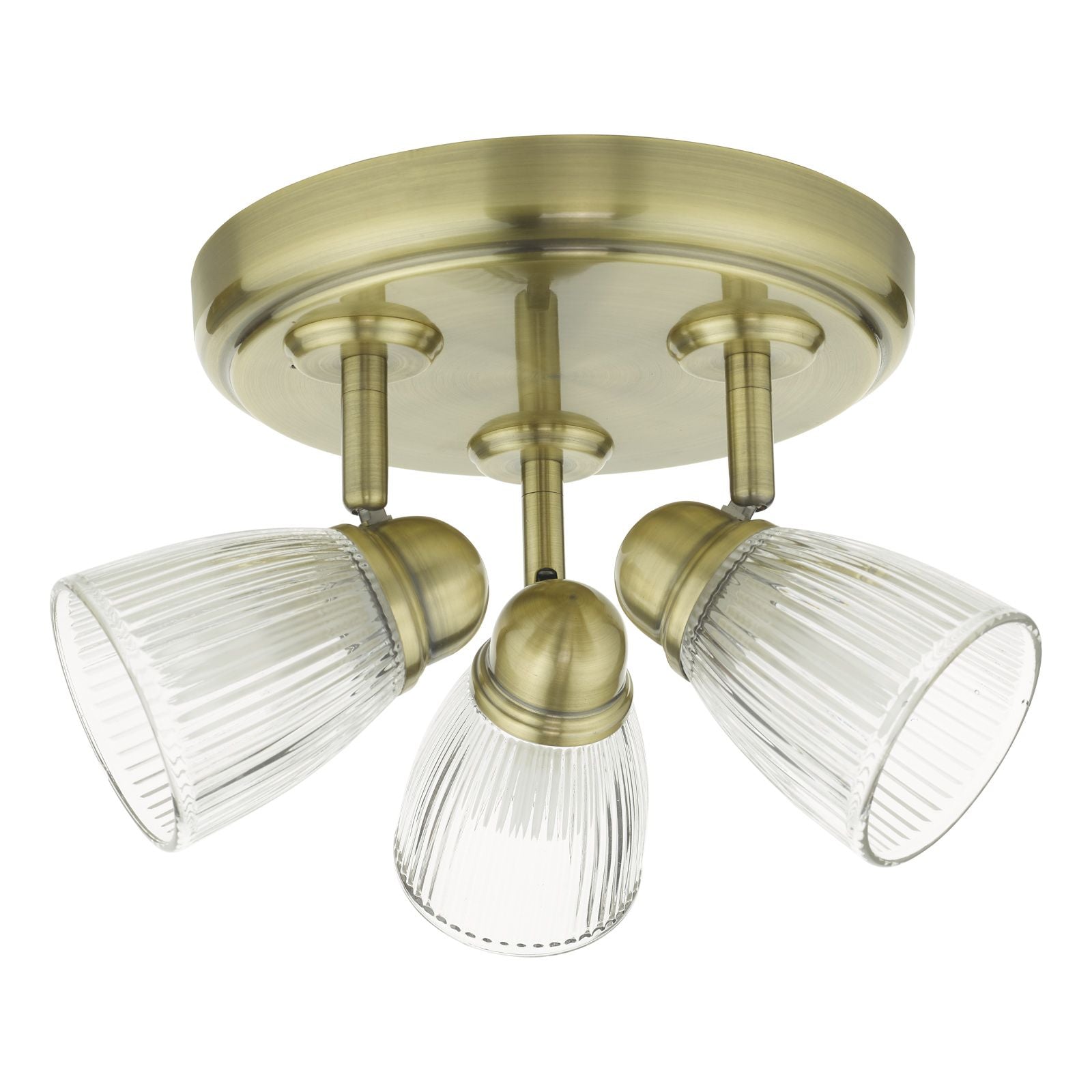 The bathroom ceiling spotlight in antique brass finish with ribbed glass shades. Is specifically designed to be safe for bathroom use in zones 1 and 2. The adjustable heads allow the light to be angled in specific areas of the room.