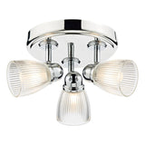 3 Light Bathroom Flush Polished Chrome Clear Ribbed Glass IP44 (0183CED7638)