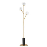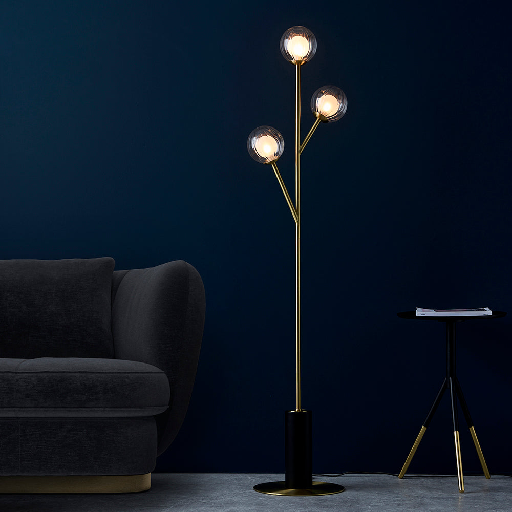 3 Light Satin Brass Floor Light with Clear Ribbed/Frosted Glass (071196693)