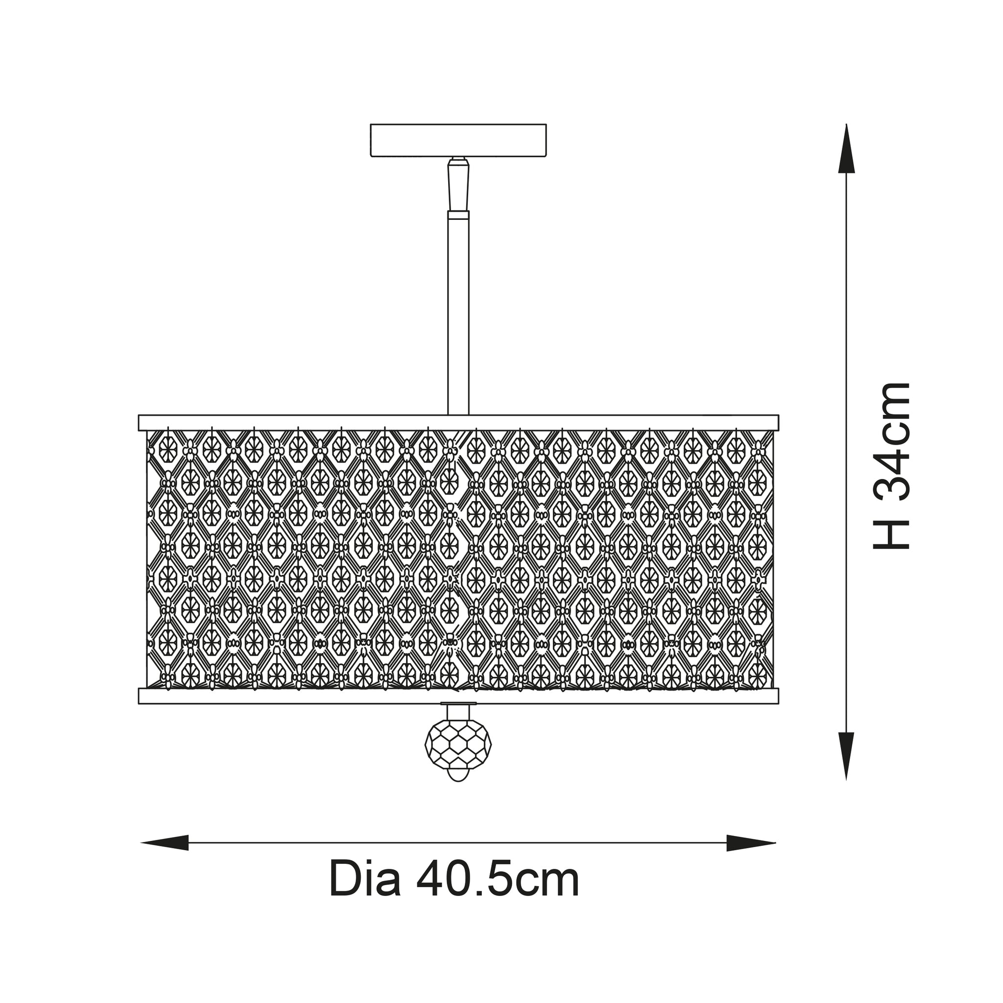 3 Light Crystal and Antique Brass Semi Flush (0711HUD70558)