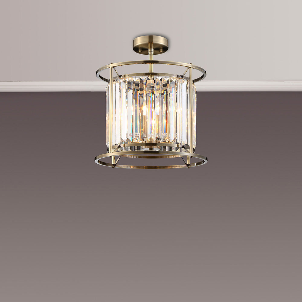 This collection offers a wide variety of pendant lights including multiple sized round options and an oval linear light. The comprehensive selection also includes flush ceiling lights, a wall and table lamp. The high quality, long rectangular, clear crystals are hung around the E14 and E27 lamp holders which creates a dazzling effect when illuminated but still maintains a stunning visual when the light is not in use. Available in three colour finishes; antique brass, polished nickel and satin black the regality of this extensive range can bring class and elegance to its given setting.