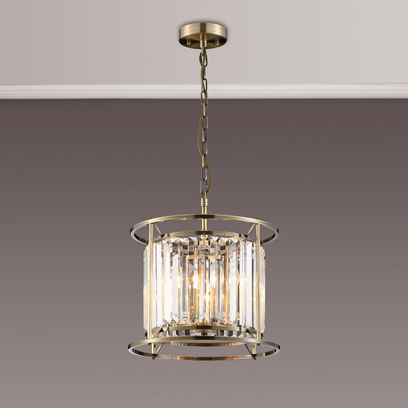 3 Light Dual Pendant in Antique Brass with Clear Crystals (1230CHA81B)