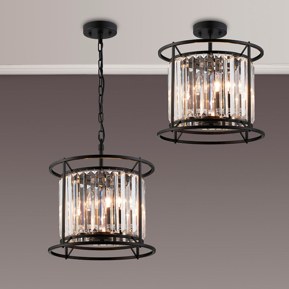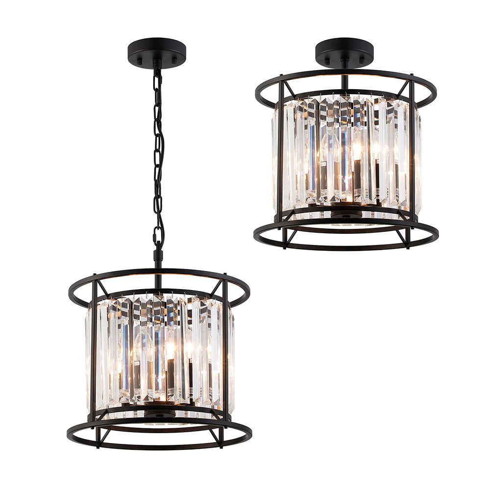 This collection offers a wide variety of pendant lights including multiple sized round options and an oval linear light. The comprehensive selection also includes flush ceiling lights, a wall and table lamp. The high quality, long rectangular, clear crystals are hung around the E14 and E27 lamp holders which creates a dazzling effect when illuminated but still maintains a stunning visual when the light is not in use. Available in three colour finishes; antique brass, polished nickel and satin black the regality of this extensive range can bring class and elegance to its given setting.