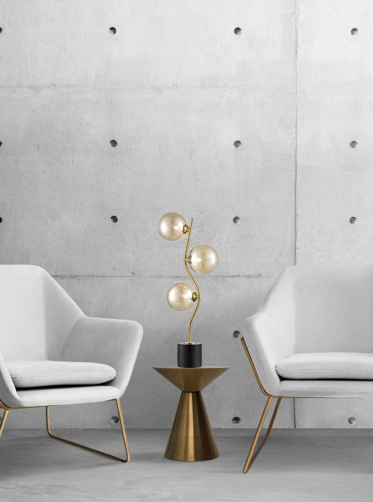 3 Light Table Lamp in Antique Gold with Amber Glass (0194COSTL210377)