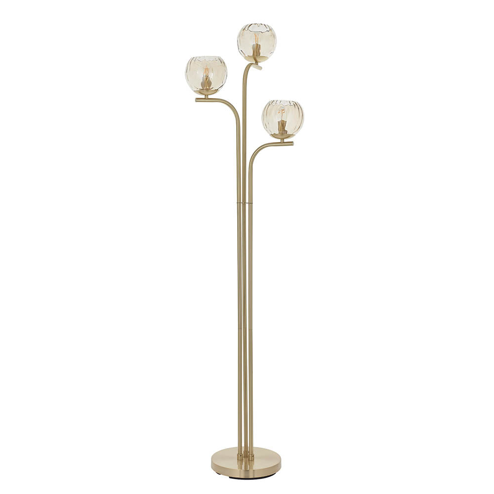 3 light Floor Lamp in Satin Brushed Gold with Champagne Glass (0711DIM91974)