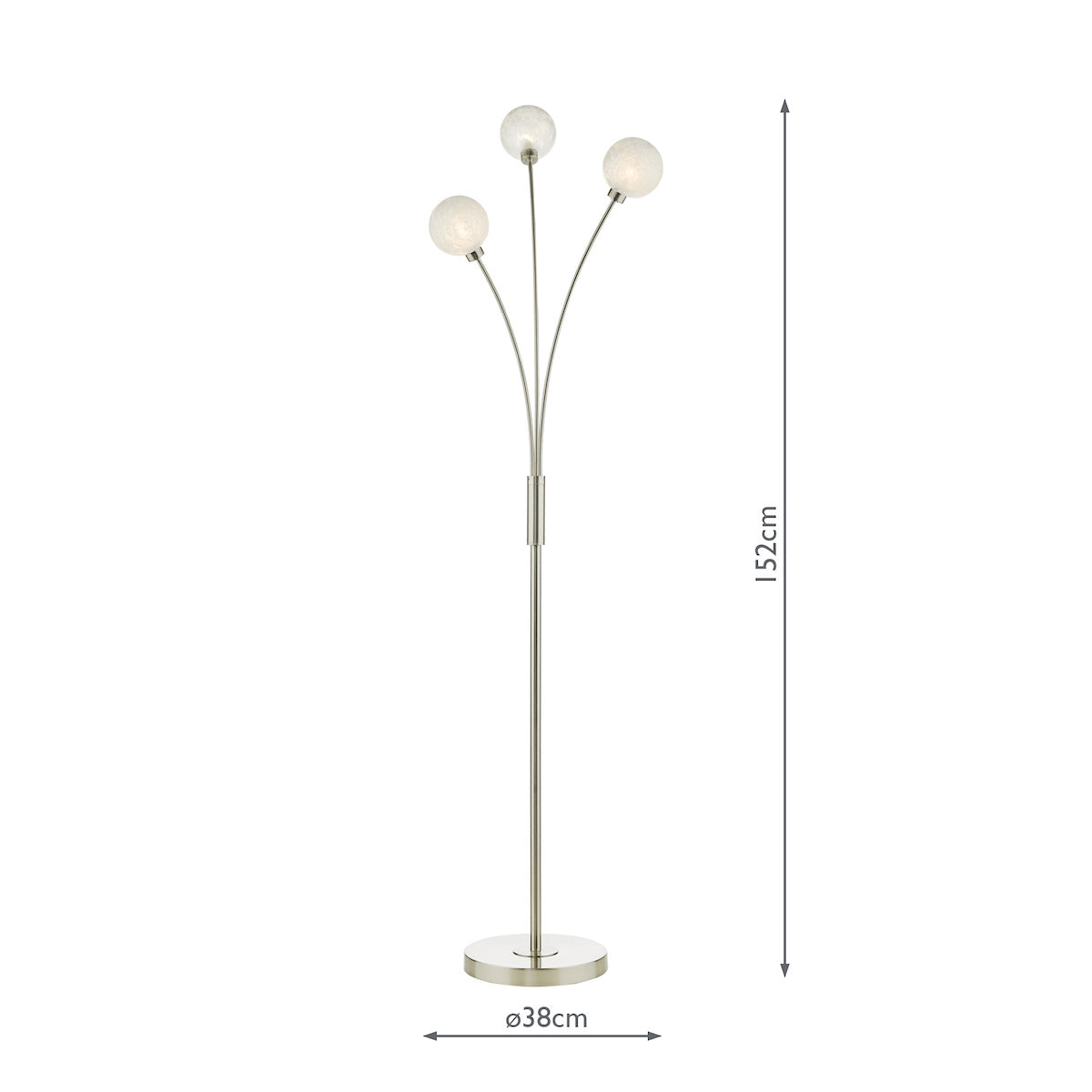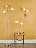A 3 light floor lamp in a satin nickel finish and frost effect glass shades. The frosted glass gently diffuses the light, which makes this a perfect floor lamp for adding a bit of ambient mood lighting to your living space.