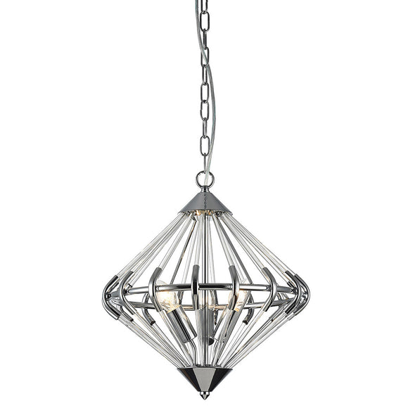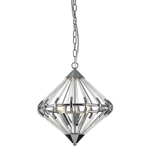 This unusual range consists of a diamond shape fitting in polished chrome with glass crystal rods. Ideal to accentuate an angled ceiling such as in a conservatory. It can be used with its chain, or as a semi-flush.