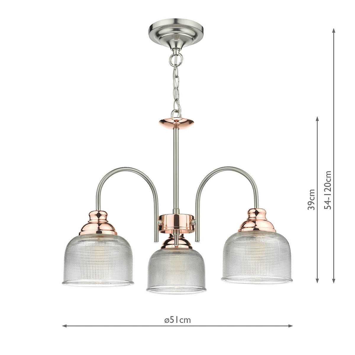 3 Light Pendant Satin Chrome Copper detail Glass shades (0183WHA0346)