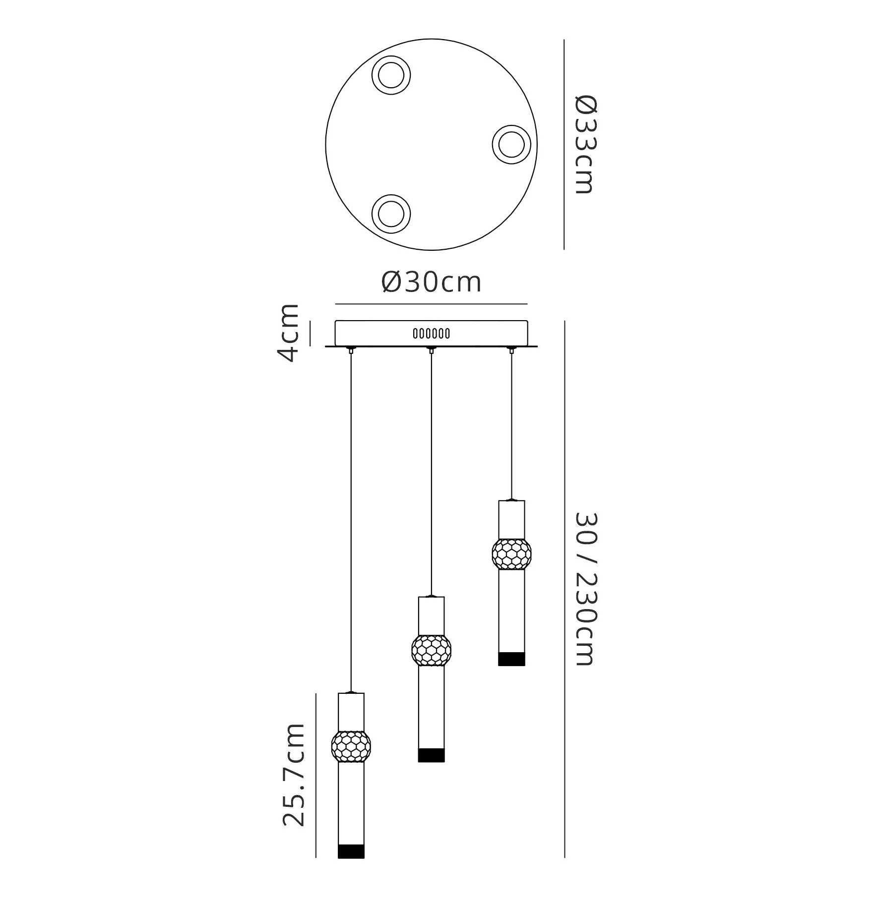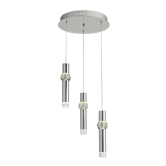 3 Light Round Pendant, 3 x 5W LED, Polished Chrome - 3yrs Warranty (1230AUR88A)