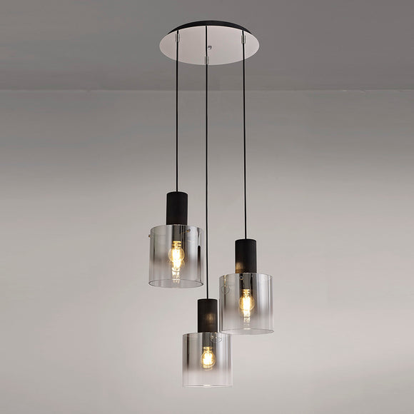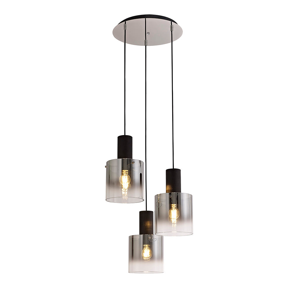 3 Light Round Pendant, Black / Smoke Fade Glass (1230CHE37B)