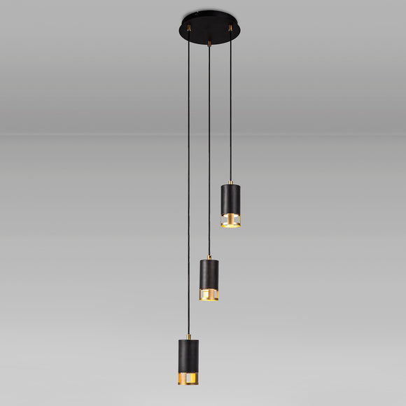 3 Light Round Pendant, GU10, Black/Painted Gold (1230BRE10C)