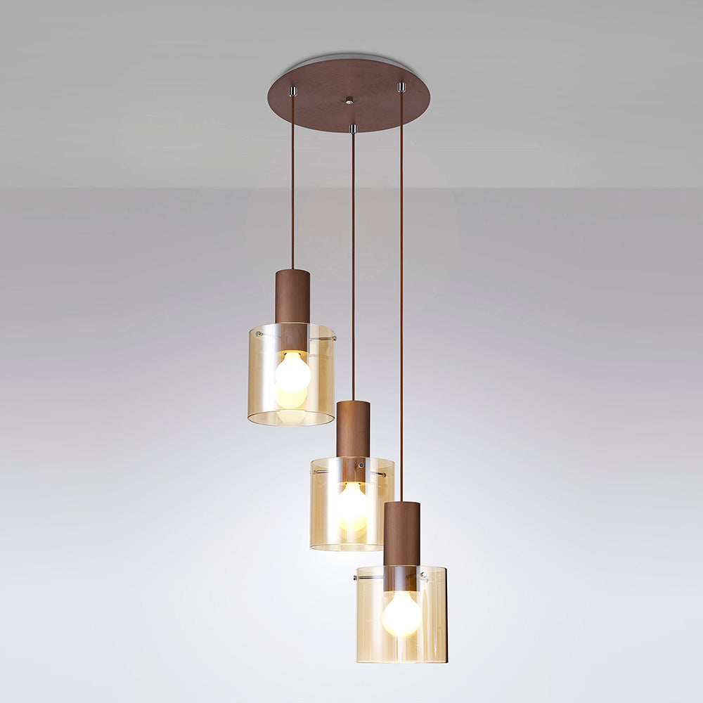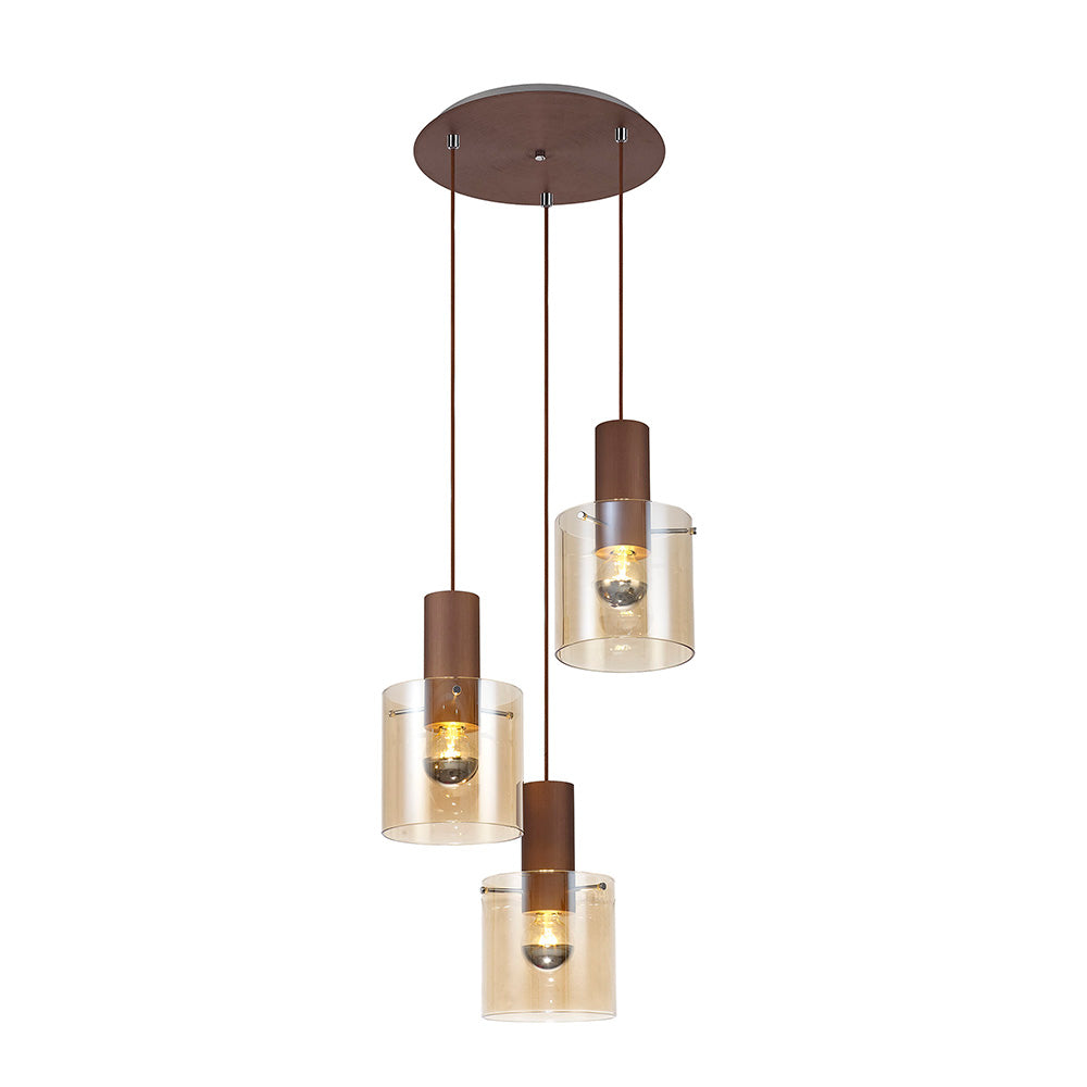 3 Light Round Pendant, Mocha / Amber Glass (1230CHE20C)