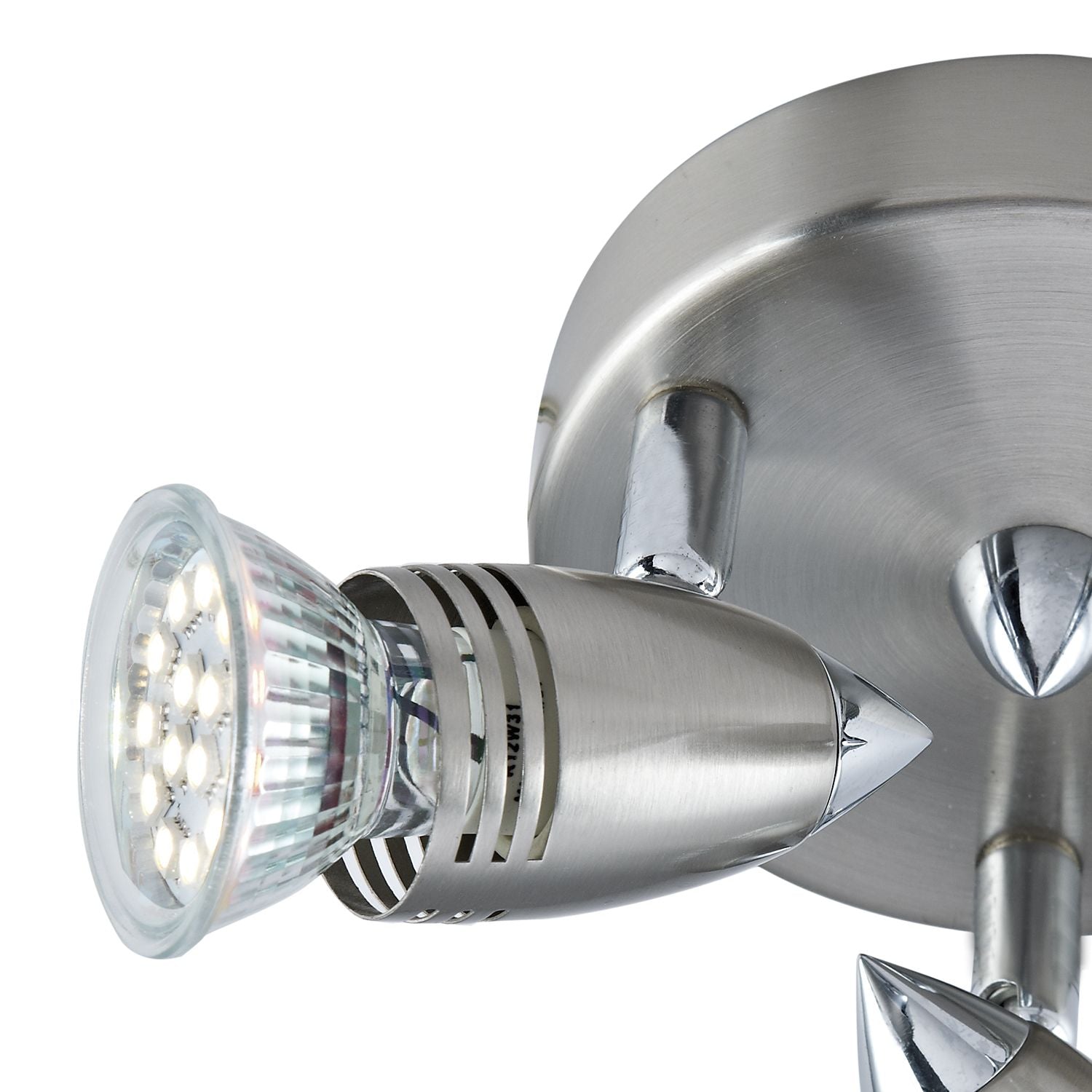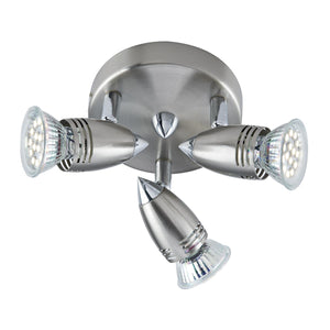 Finished in satin chrome, this 3 light ceiling light features 3 directional swivel heads.