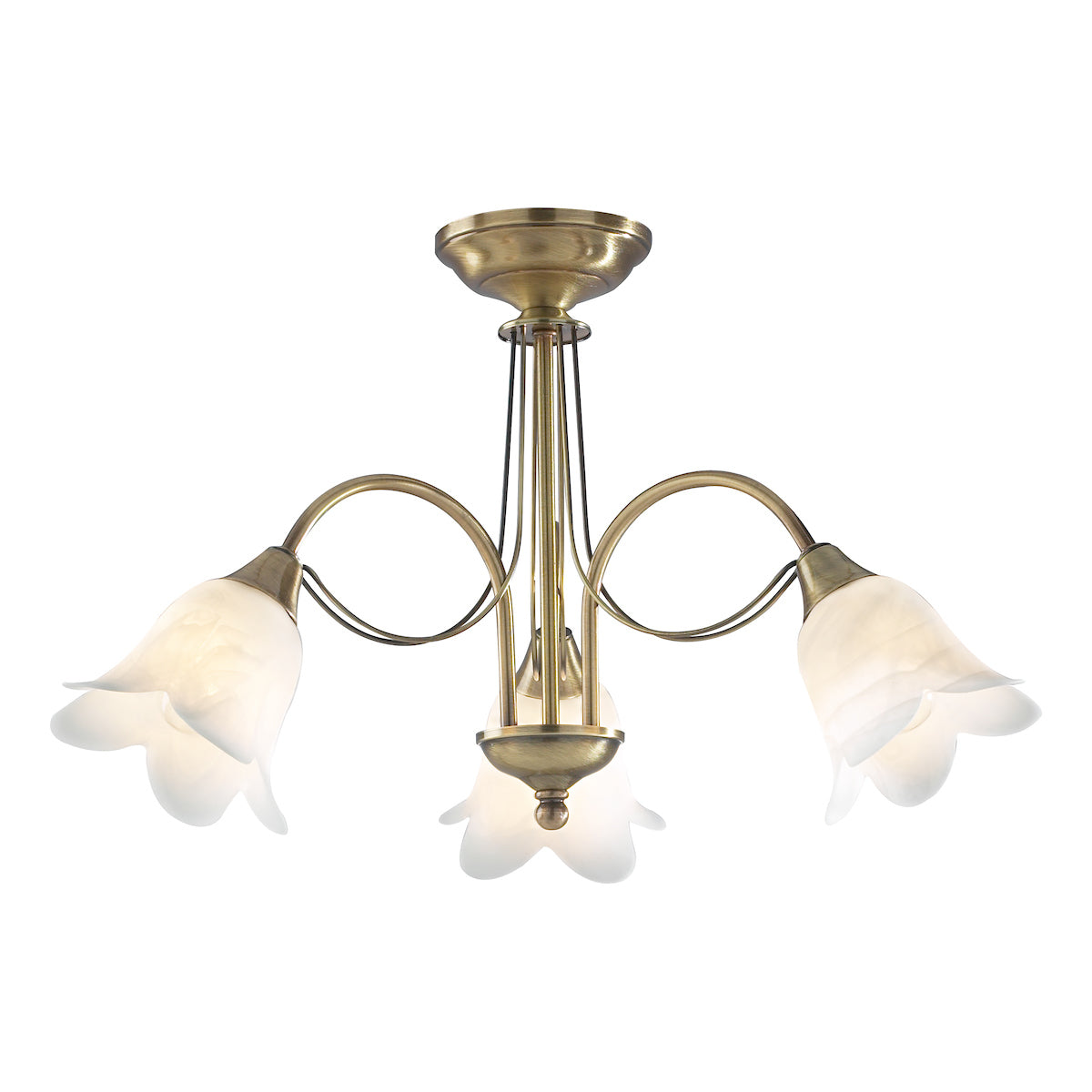 3 Light Semi Flush Antique Brass complete with Alabaster Glass (0183DOU0375)