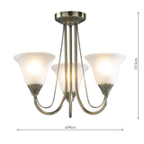 3 Light Semi Flush Antique Brass complete with Glass (0183BOS03)
