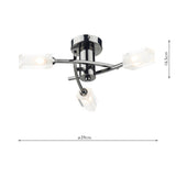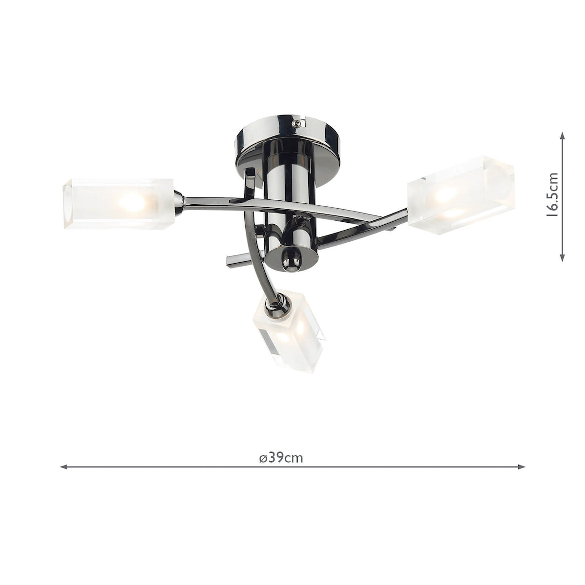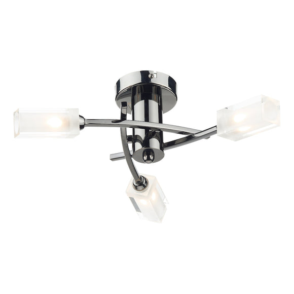 The 3 Light Semi Flush has clear glass shades with frosted inner detail and a black chrome frame.