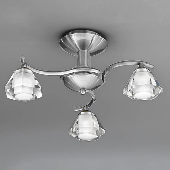 3 Light Semi Flush Ceiling Fitting in Satin Nickel Finish (0194TWIFL22943)