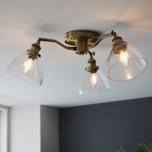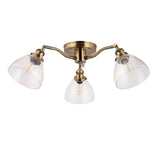 3 Light Semi Flush Fitting in Antique Brass Finish and Clear Glass Shades (0711HAN97247)