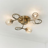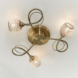 This 3 light flush finished in antique brass will add style to any room, featuring mesh shades encrusted with clear glass beads. Suitable for use with LED G9 lamps.