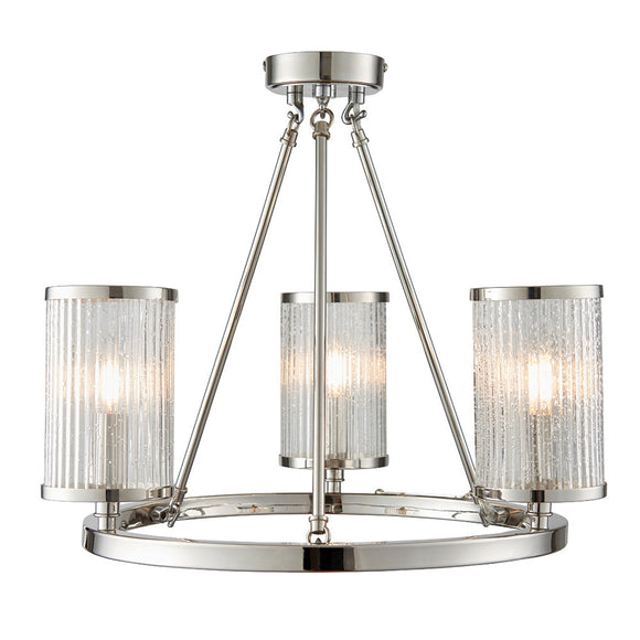3 Light Semi Flush in Bright Nickel and Ribbed Glass (0711EAS76261)