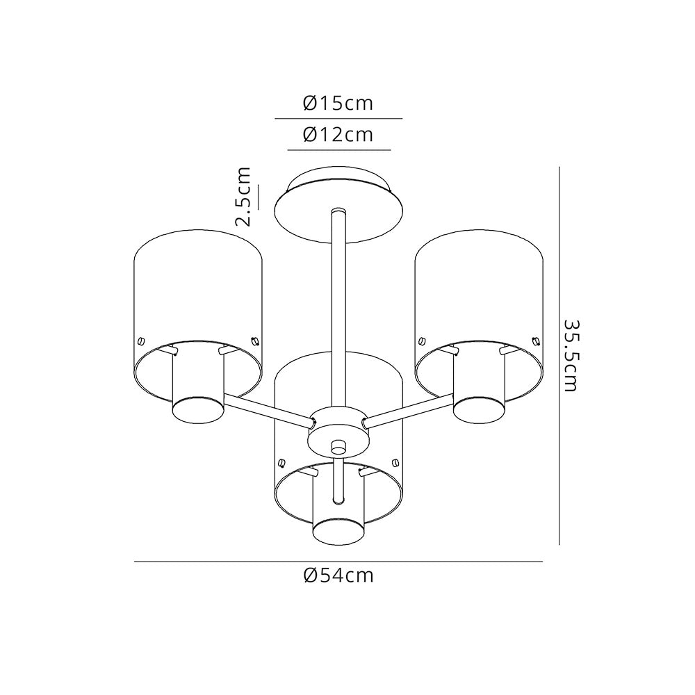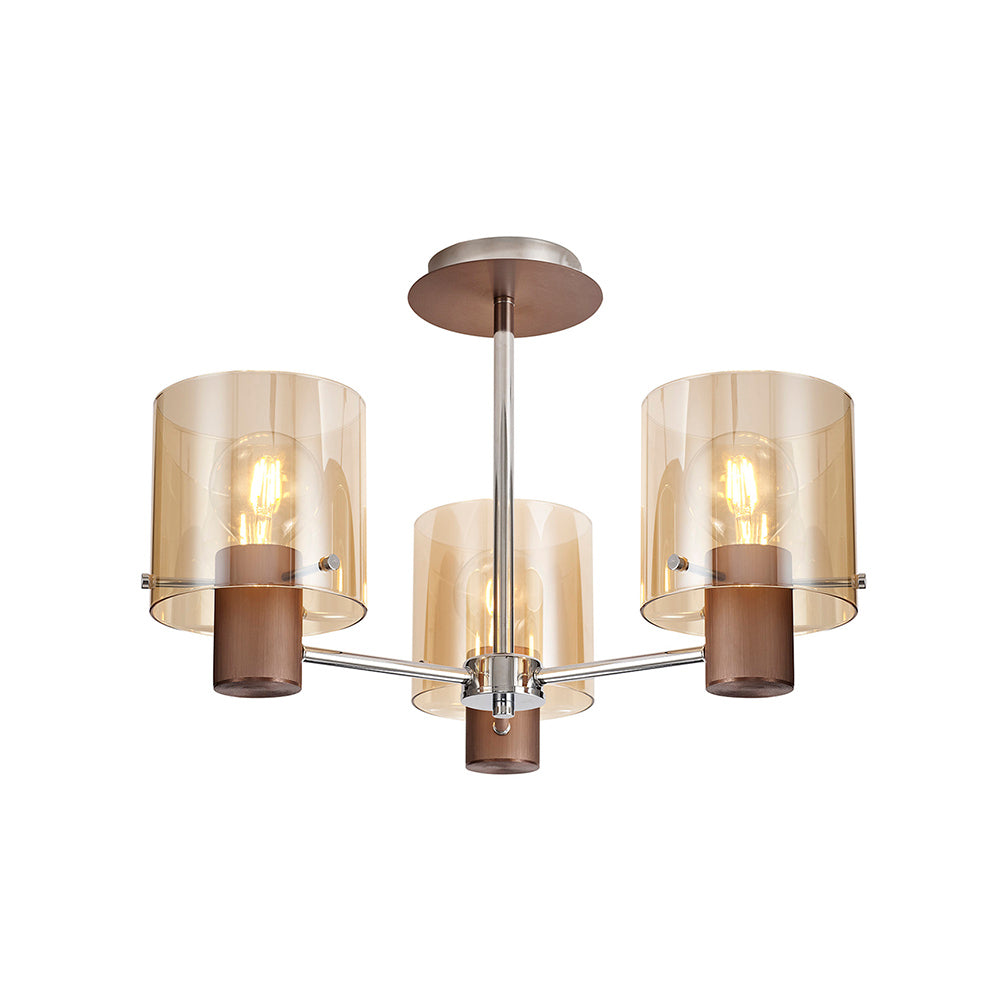 3 Light Semi Flush, Mocha / Amber Glass (1230CHE19B)