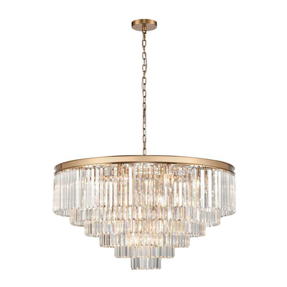 30 Light Tiered Chandelier in Brushed Brass and crystals 100cm diameter (0194PERDG30)
