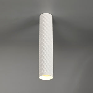 The cylindrical format of this range is decorated with a diamond imprint producing a mesh like effect. These light fittings are available as a surface mounted ceiling fitting, wall lamps, track spotlight or surface mounted adjustable spotlight. The wide variety of colour finishes available, complementing face ring accessories and the pendant kit offers a greater number of lighting solutions for all kinds of room settings and applications.