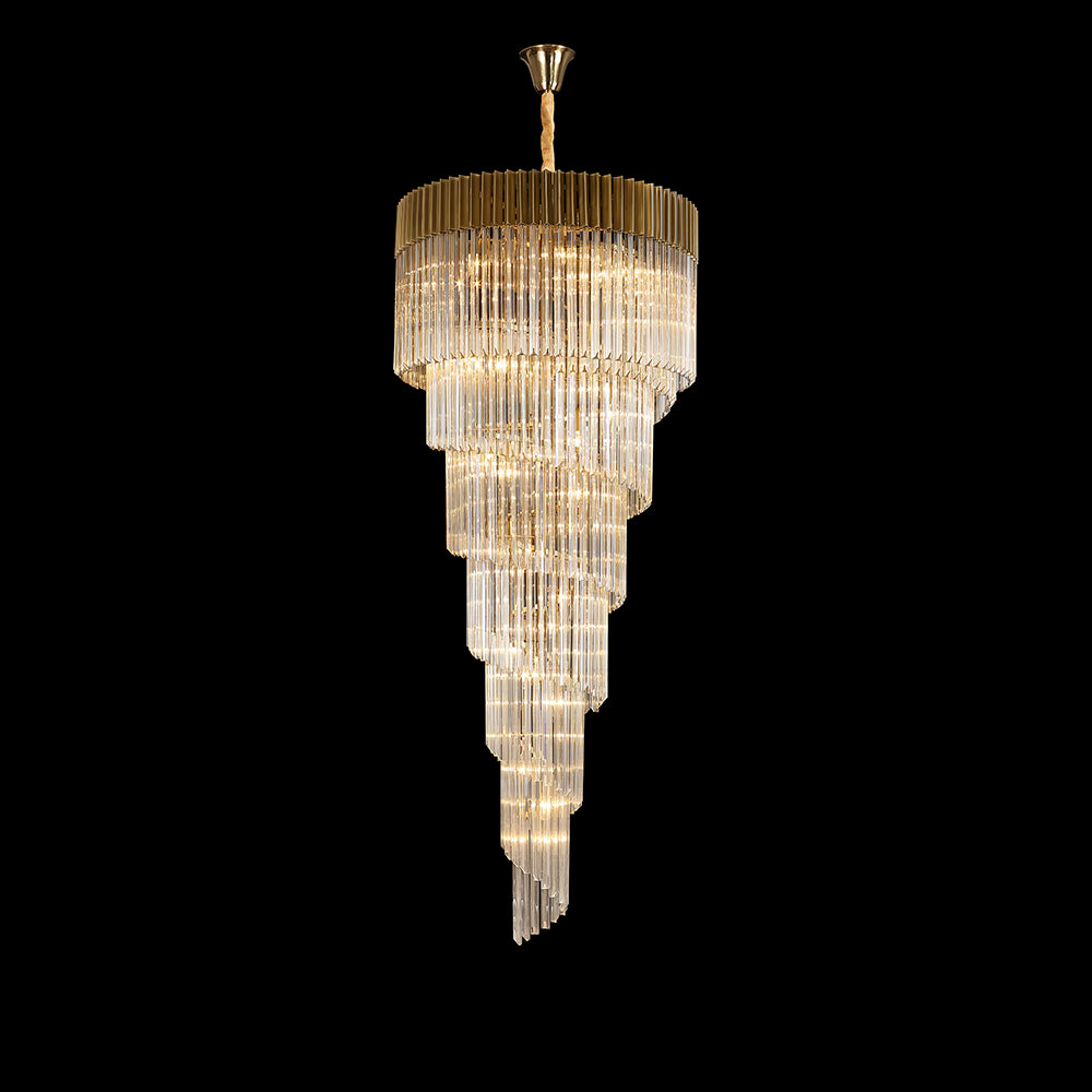 The popularity of this collections initial release has been so overwhelming that the collection has now been extensively expanded to meet a wider range of specification needs. This contemporary design which originally combined a traditional brass finish with clear sculptured glass pieces, now offers a polished nickel or matt black finish with either clear, cognac or smoked glass. The long angular shape of the glass which are in a tiered form, can now be found on larger more dramatic designs including a five tier and rectangular pendant to name only a few. This range has a traditional regal effect composed with modern materials to create a range suitable for either a modern or more traditional room setting. The unique pyramid forms protruding from the frame provide an intriguing overall shape across this comprehensive collection.