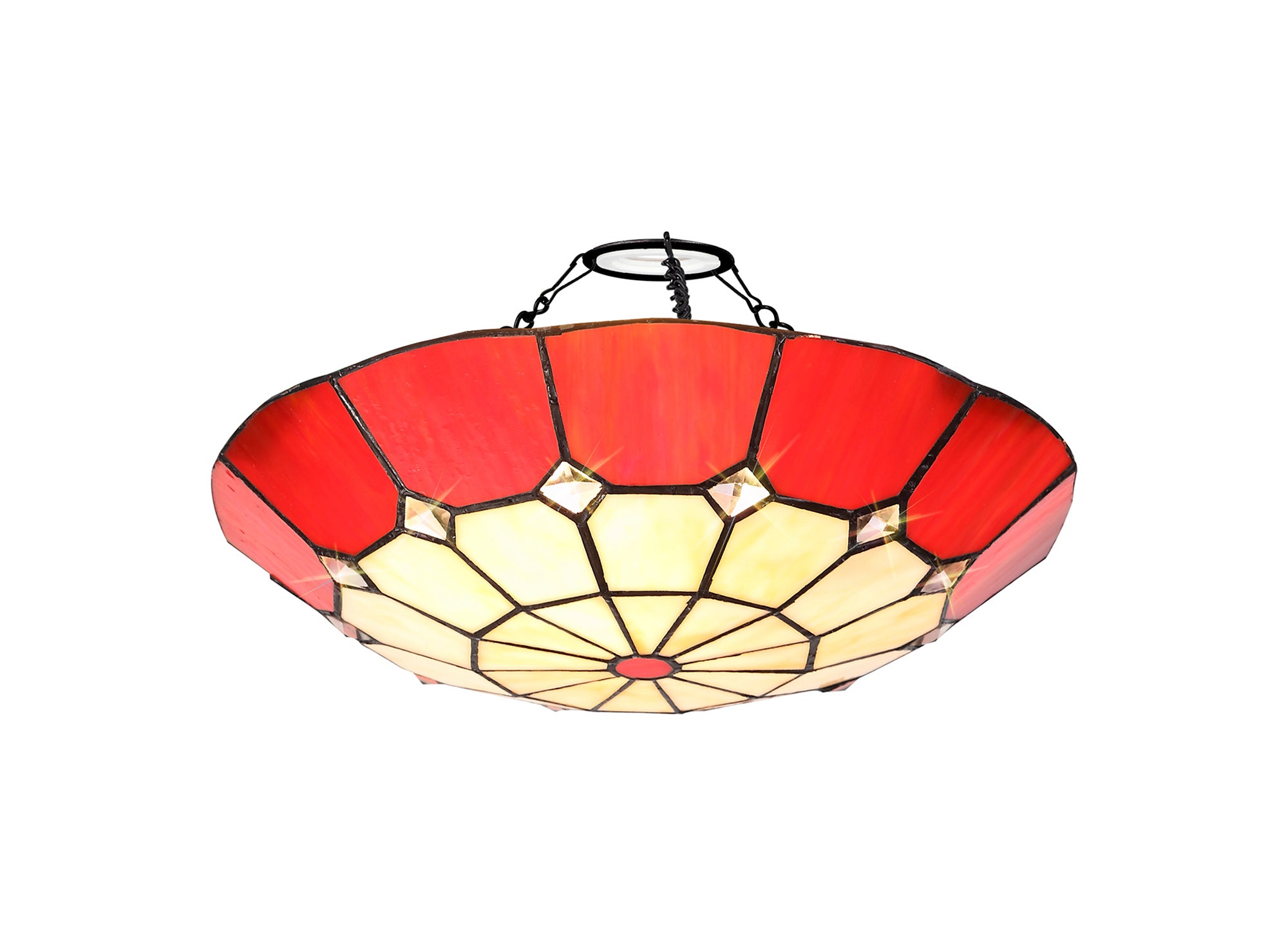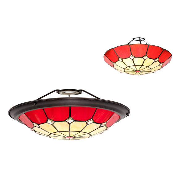 A classic traditional range, Majestic offers the best of Tiffany glass designs in the form of a 35cm uplighter shade. Available in an array of colour options, this non-electric shade brings its design into the modern era by implementing a dazzling clear crystal centre, inserting an attractive spectrum of colour seamlessly complementing the warm multi-coloured glow provided by the unique glass shapes.
