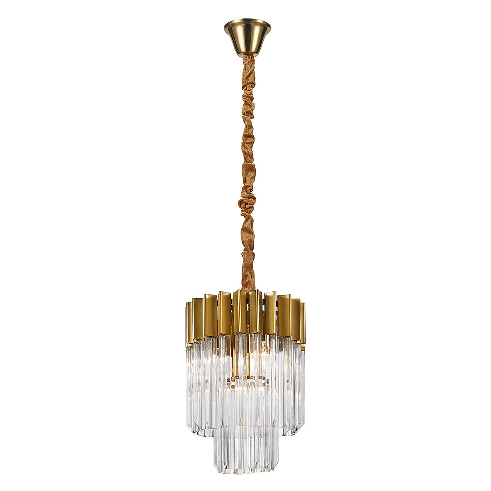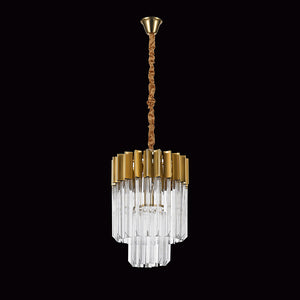 The popularity of this collections initial release has been so overwhelming that the collection has now been extensively expanded to meet a wider range of specification needs. This contemporary design which originally combined a traditional brass finish with clear sculptured glass pieces, now offers a polished nickel or matt black finish with either clear, cognac or smoked glass. The long angular shape of the glass which are in a tiered form, can now be found on larger more dramatic designs including a five tier and rectangular pendant to name only a few. This range has a traditional regal effect composed with modern materials to create a range suitable for either a modern or more traditional room setting. The unique pyramid forms protruding from the frame provide an intriguing overall shape across this comprehensive collection.