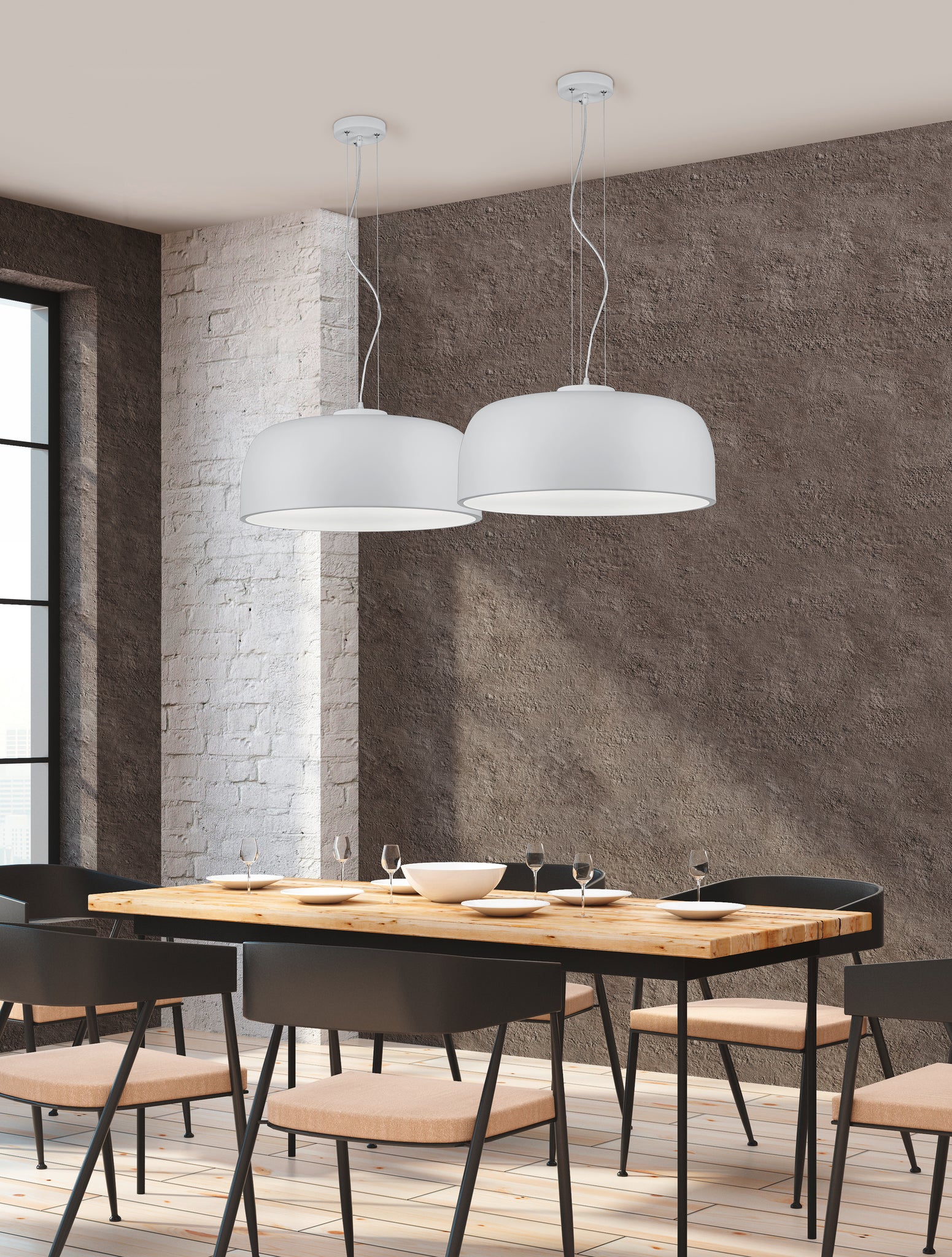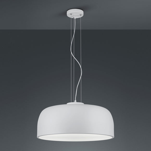 A Modern Matt White domed Pendant which looks stunning alone or grouped together over a breakfast bar or office boardroom table.