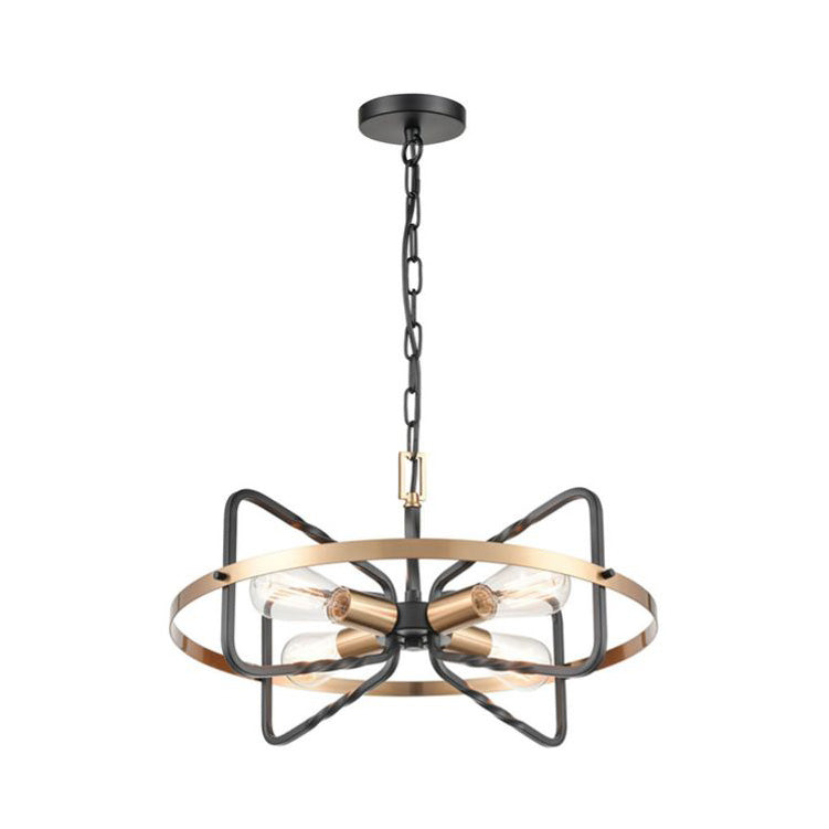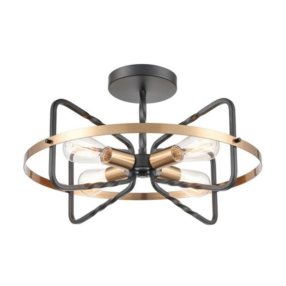 Dark, antique bronze finish fitting with twisted metalwork arms and brushed brass candle tubes. This fitting is supplied with a chain suspension which can be converted to a flush fitting suitable for low ceilings.