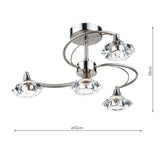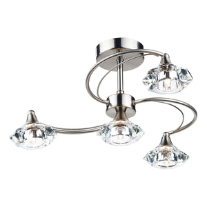 4 Light Semi Flush fitting in satin chrome with faceted crystal glass shades.