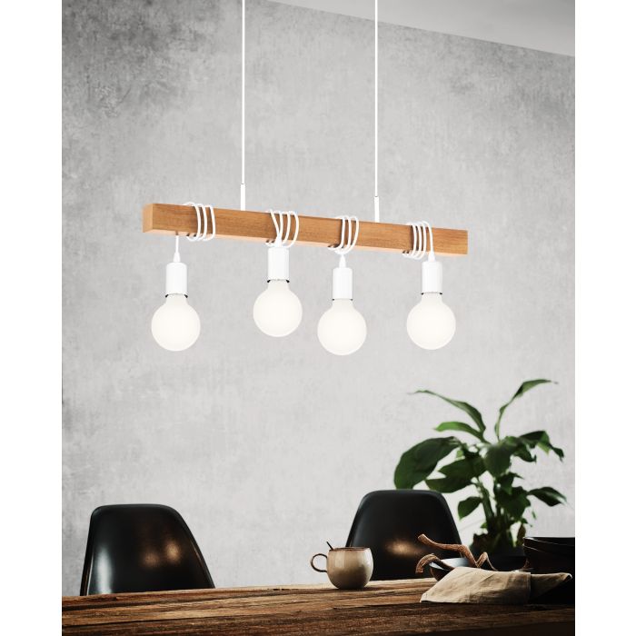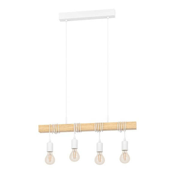 4 Light Vintage Bar Pendant in Steel, White & Wood, Brown (0794TOW33164)