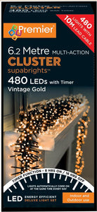 480 LED Multi Action Vintage Gold Cluster Christmas Lights with Timer