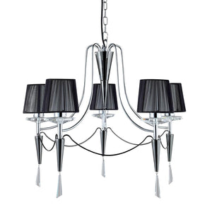 5 Light Ceiling Pendant - Chrome/Crystal and Black Shades (0483DUC20855CC)