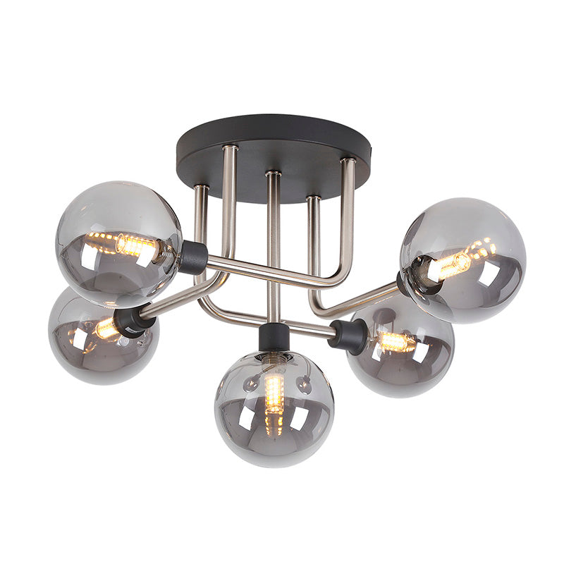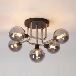 5 Light Flush Ceiling Fitting - Graphite/Satin Nickel/Smoke Glass (1230FAI39A)