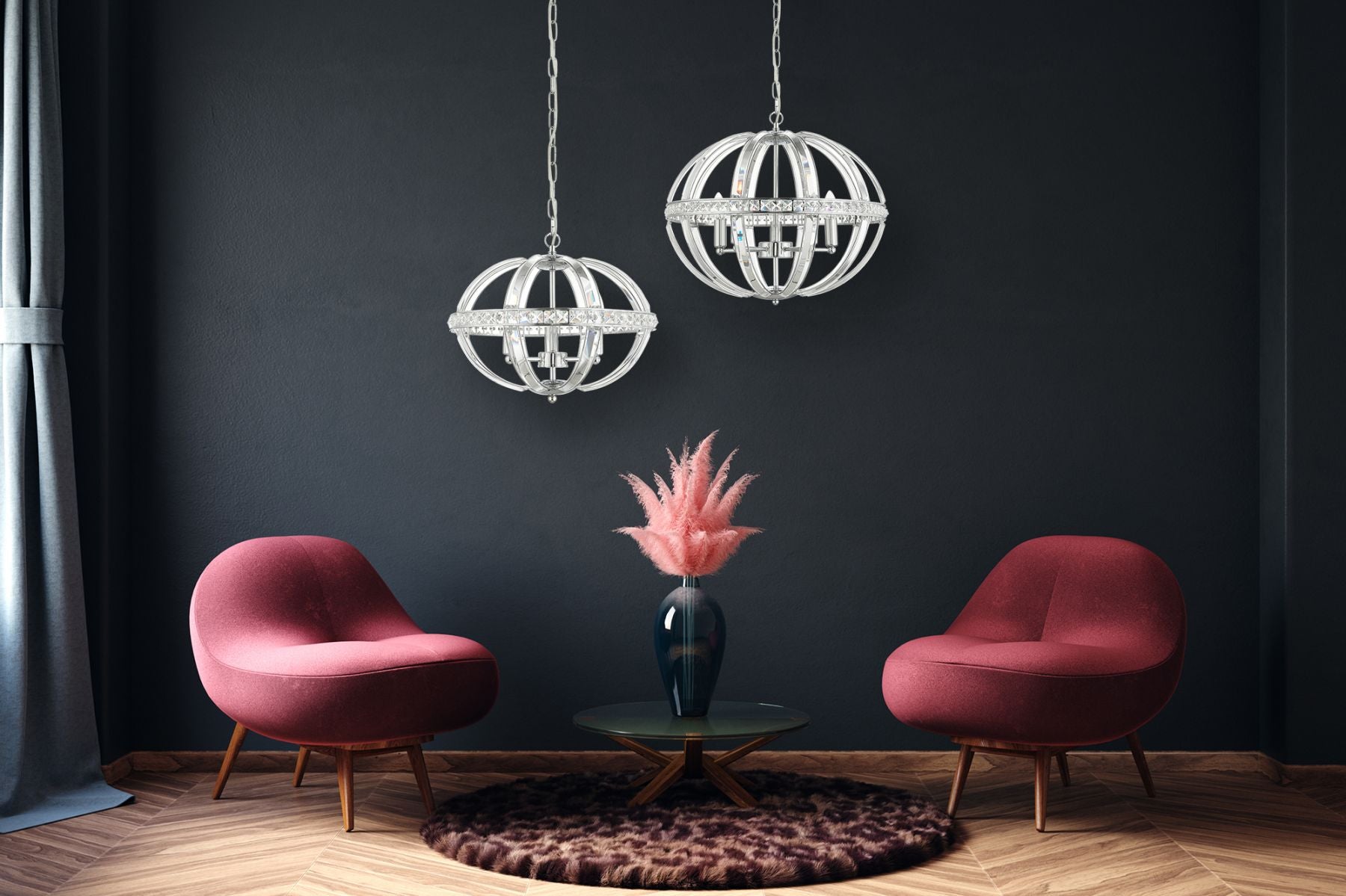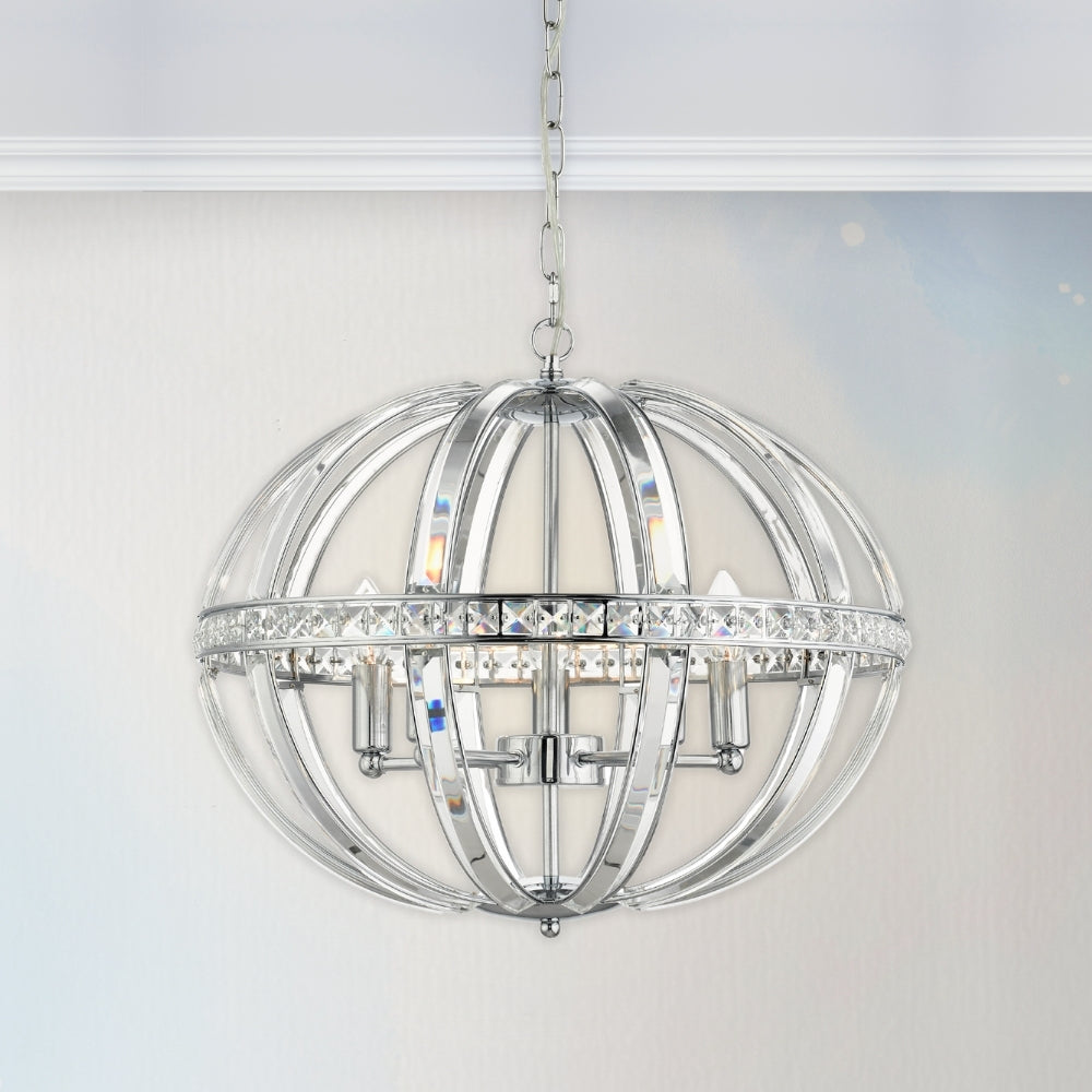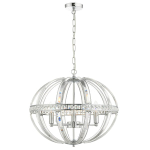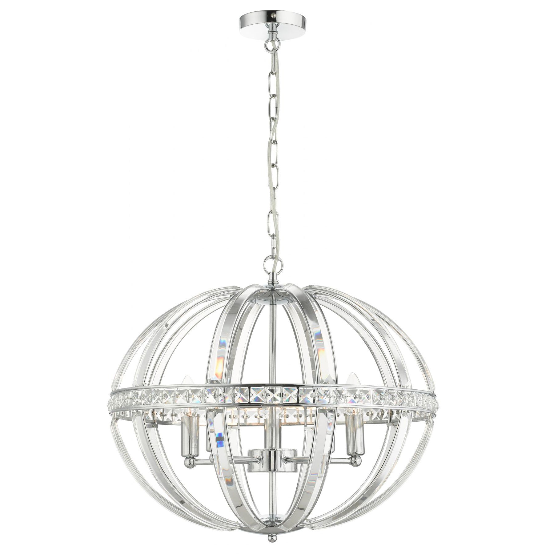 This stunning oval 5 light crystal pendant is beautifully finished in polished chrome adding a touch of glamour and sparkle that will brighten any room. The pendant is also available in a 3 light and there is a table lamp and wall light to match.