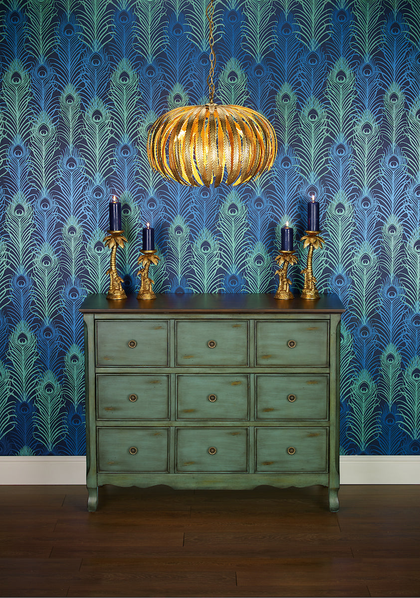 A real showstopper, this 5 Light Pendant features intricate hand crafted leaves which have been finished in hand-applied gold leaf.