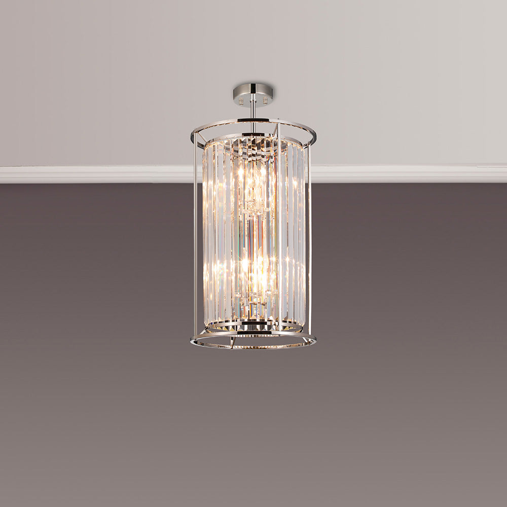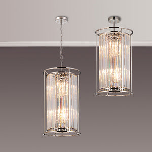 This collection offers a wide variety of pendant lights including multiple sized round options and an oval linear light. The comprehensive selection also includes flush ceiling lights, a wall and table lamp. The high quality, long rectangular, clear crystals are hung around the E14 and E27 lamp holders which creates a dazzling effect when illuminated but still maintains a stunning visual when the light is not in use. Available in three colour finishes; antique brass, polished nickel and satin black the regality of this extensive range can bring class and elegance to its given setting.