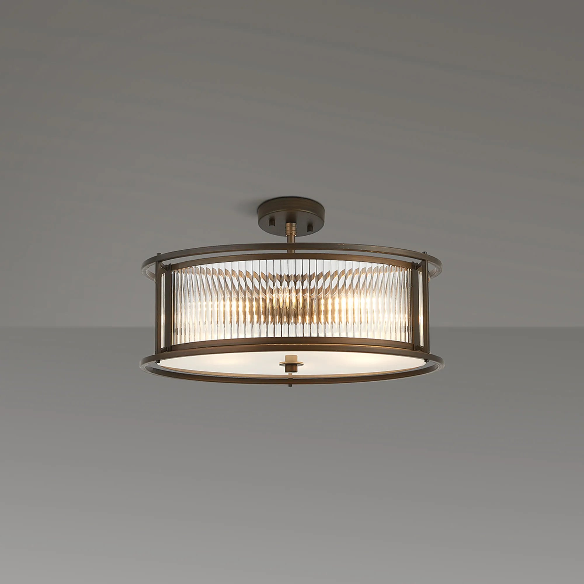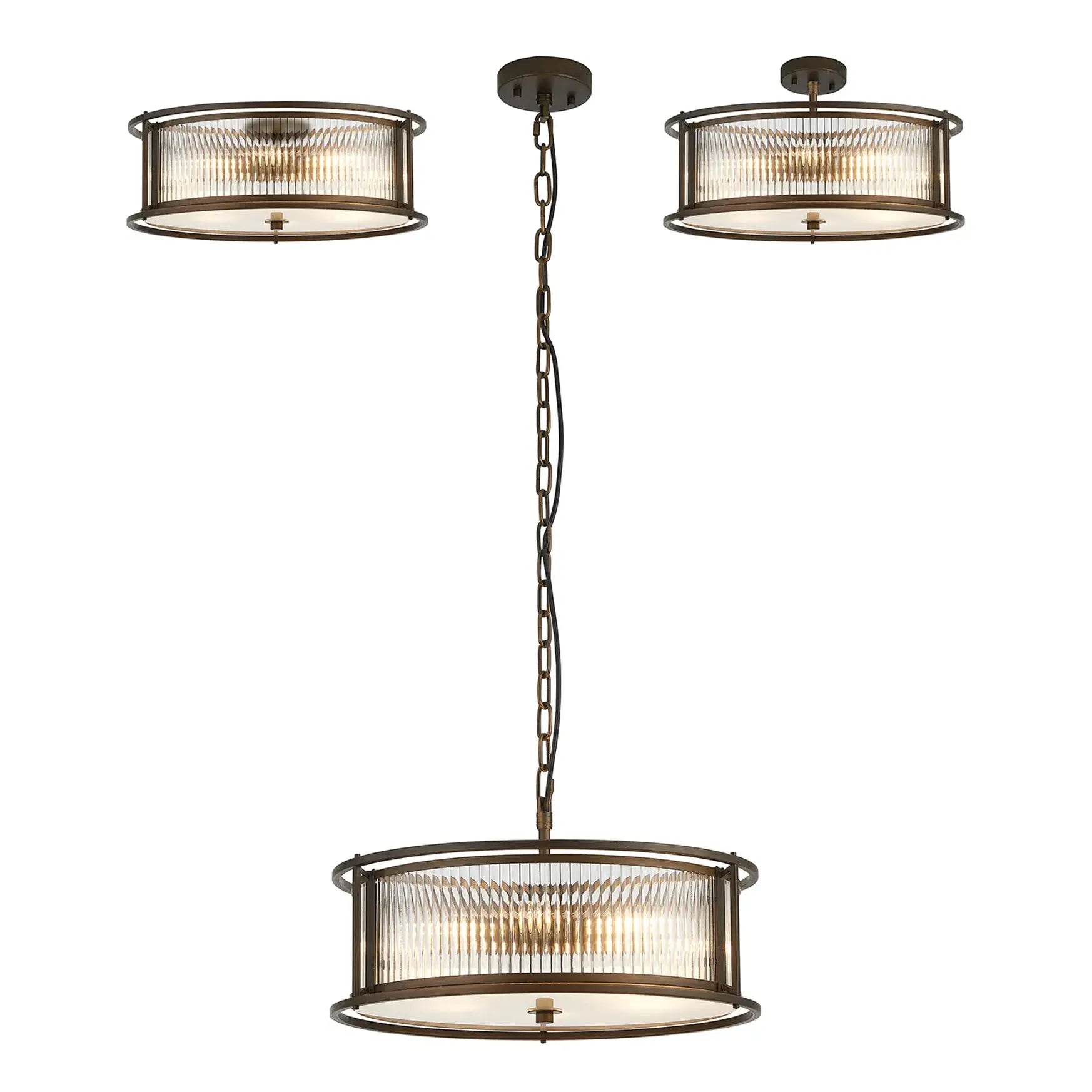 Luxe presents a captivating collection of lantern-style lighting, featuring elegant round and generously sized oval pendants-each effortlessly convertible to semi-flush or flush mount. Available in four exquisite finishes, you can easily find the perfect hue to complement your décor. The ribbed glass panels add a distinctive texture and subtle visual intrigue, enhancing the character of every fixture. Whether you're seeking a modern vibe or a timeless classic look, the Luxe collection offers versatile, stylish lighting options designed to elevate any interior. Complete the look with complementing wall, table or floor lamp.